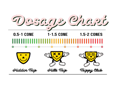 - 1/2 To 1 Cone- This is considered a micro dose. This dose is perfect for users looking for a more mild experience. Users may experience enhanced colors and sounds with some movement and mood enhancement. It is Perfect for a deep work session or exploring your creative side.